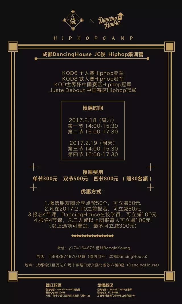 3. 报名4节课,DancingHouse在校学员,可立减100元.