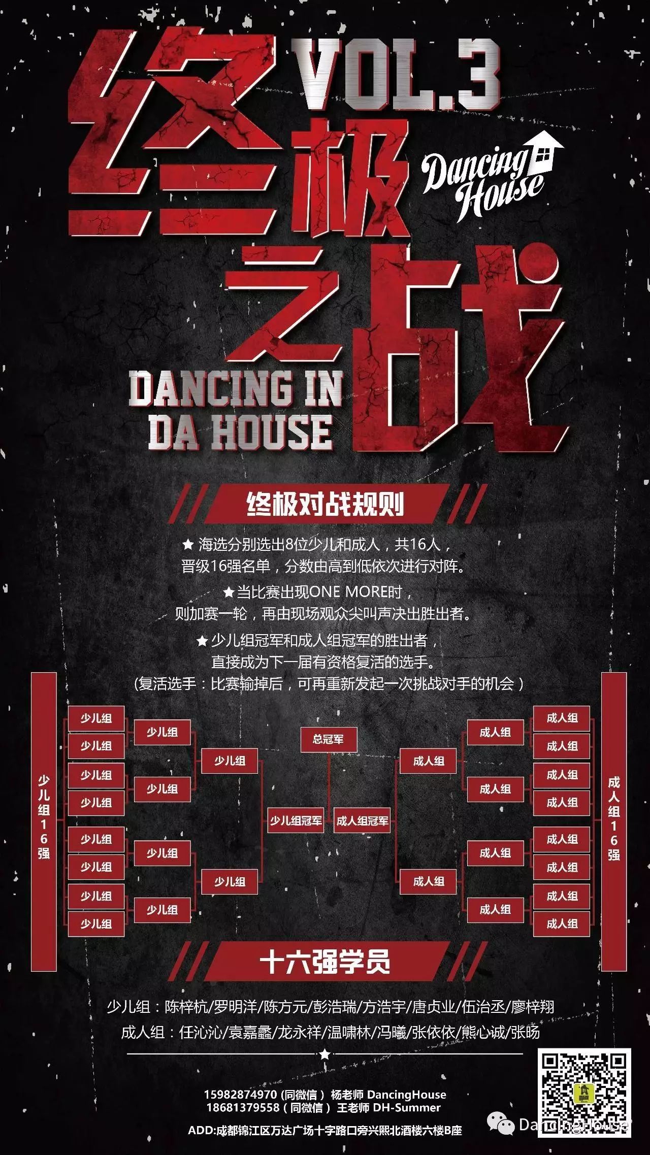 本次比赛由DancingHouse各班老师筛选出直接晋级16强的学员有: